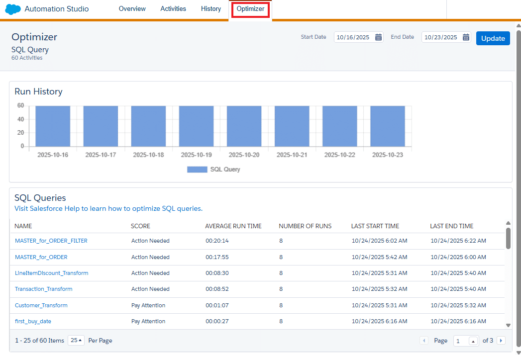 Marketing Cloud Engagement の Winter ’26 新機能リリースでは、SQL クエリアクティビティの健全性を可視化・最適化するための 最適化ダッシュボード···